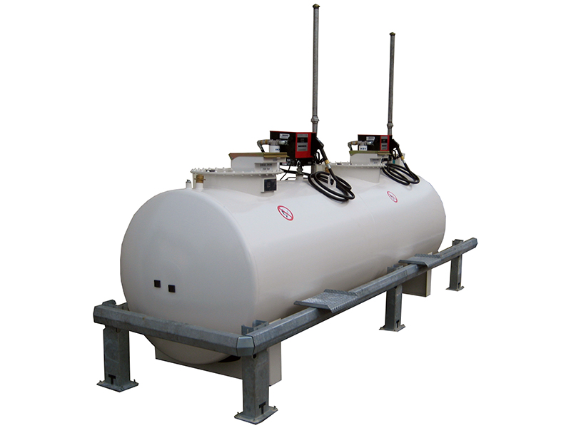 Der Kraftstofftank verfügt über 2 Pumpen und einen Kollisionsschutz. Er ist gut geeignet für den Betrieb mit größeren Netzersatzanlagen und Containerstromaggregaten.